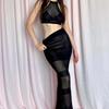 Elegant Stylish New Arrival Summer Sleeveless Halter Short Midriff-Baring Tank Top Sexy See-through Mermaid Dress Knitting Suit