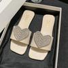 Fashion Sweet Rhinestone Heart Slides Women, Beige Casual Daily Sandals, CSDXY Brand Fashion Footwear