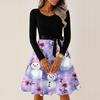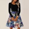 Women's Casual Fashion Round Neck Long Sleeve Christmas Printed Party Vintage Long Dresses