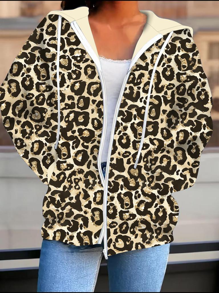 Leopard Print 3D Printed Hooded Cardigan Plus Size Autumn Winter Retro