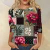 Women's Fashion Casual Round Neck Three-quarter Sleeve Retro Floral Print T-shirt Top