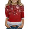 Christmas Day Print Tops For Youth Girls 4-11 Years Round Neck 3/4 Sleeves T-Shirts Trendy Tops Outfit Tees