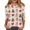 Women's O-Neck 3/4 Sleeve Christmas Print Top