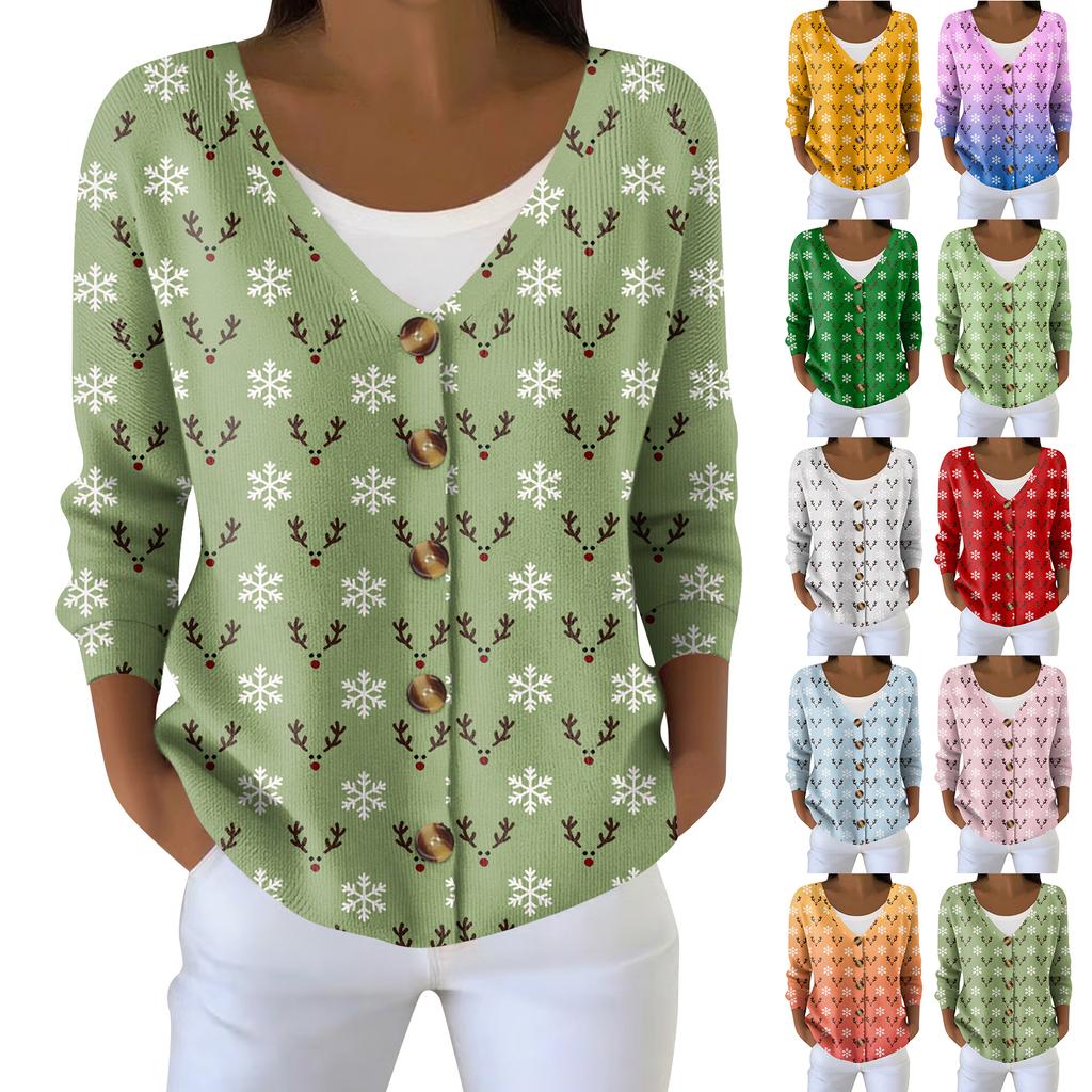 Women's Fashion Long Sleeve Christmas Snowman Snowflake Print Jacket Cardigan