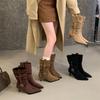 Pointed high-heeled short boots women's 2025 new autumn retro pleated piled boots thin heels western thin boots