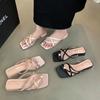 French evening high heels sandals temperament socialite pigeon egg pinch sandals women's summer wear with skirt slippers