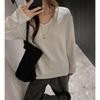 Spring Autumn V-neck Solid Color Long Sleeve T-shirt Women Loose Casual Simple All-match Pullover Tee Top