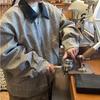 Mode décontracté dames en peluche poche couture couleur correspondant veste Cardigan à carreaux