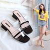 New Women's High-heeled Slippers Transparent Mules Summer Women's Shoes Metal Buckle Open Toe Square Low-heeled Word Sandals