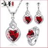 Sterling Silver Garnet Red Heart Stud Earrings - Korean Style