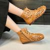 Sheepskin version~ Design sense net boots leather wide tube hole western boots women's retro hollow breathable Maillard cool boots
