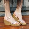 Moda donna estate zeppe casual stampa floreale reticolo sandali da spiaggia con tacco alto scarpe peep toe