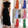 Abito Estivo da Donna alla Moda ed Elegante con Scollo a V, Senza Maniche, Schiena Scavata, Monocolore, Plissettato