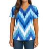 Women's Gradient Print V-Neck Double Pocket Short Sleeves Hem Slit Uniform Caregiver Top
