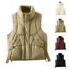 Women's Solid Color Fashionable Pocket Stand Up Collar Button Vest Jacket