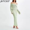 BITCED Autumn/Winter Plus Size Women's Loose Batwing Sleeve Knitted Long Pullover Dress