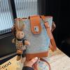 Stylish and simple contrasting color bucket bag women's 2025 new shoulder messenger bag high value casual strap handbag