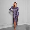Rhinestone ჰალსტუხი გრძელმკლავიანი Satin Slim Fit კაბა