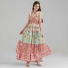 ქალის საზაფხულო უმკლავო მაღალწელიანი ბოტანიკური პრინტით გაშლილი ჰალტერის კაბები