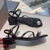 2024 New Sandals and Slippers Women's Angled Square Toe Low-heeled Sandals Comfortable Open-toed Pearl Shoes Women