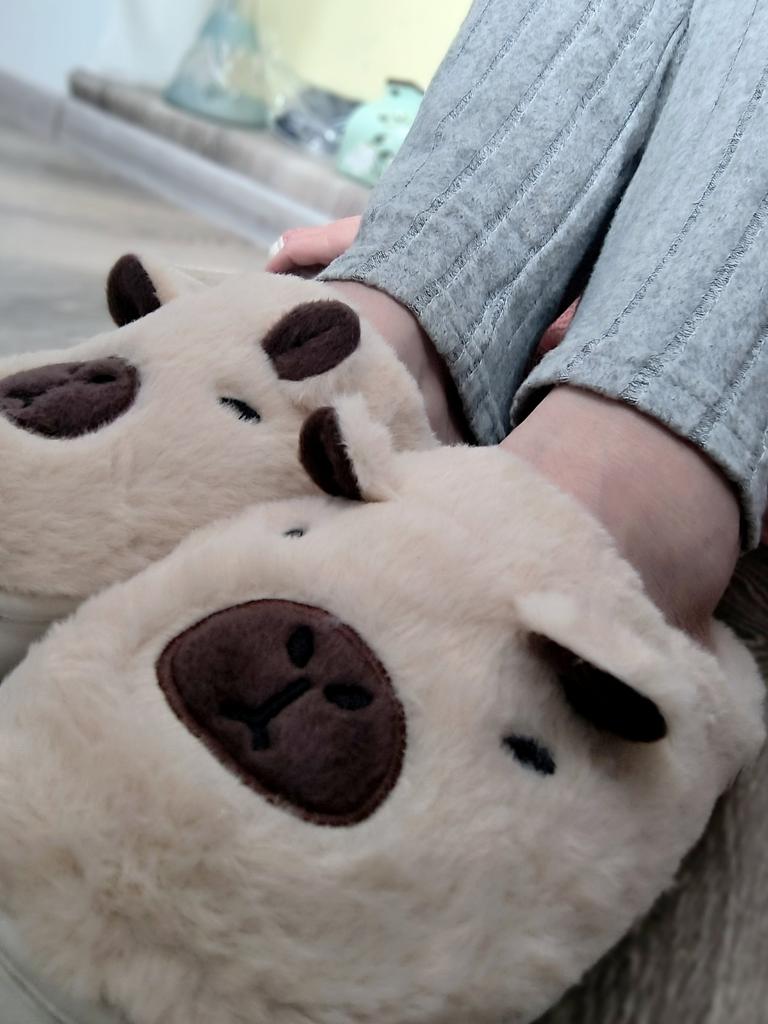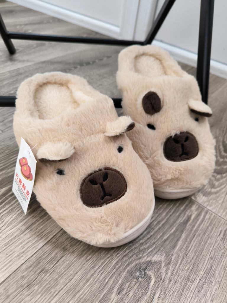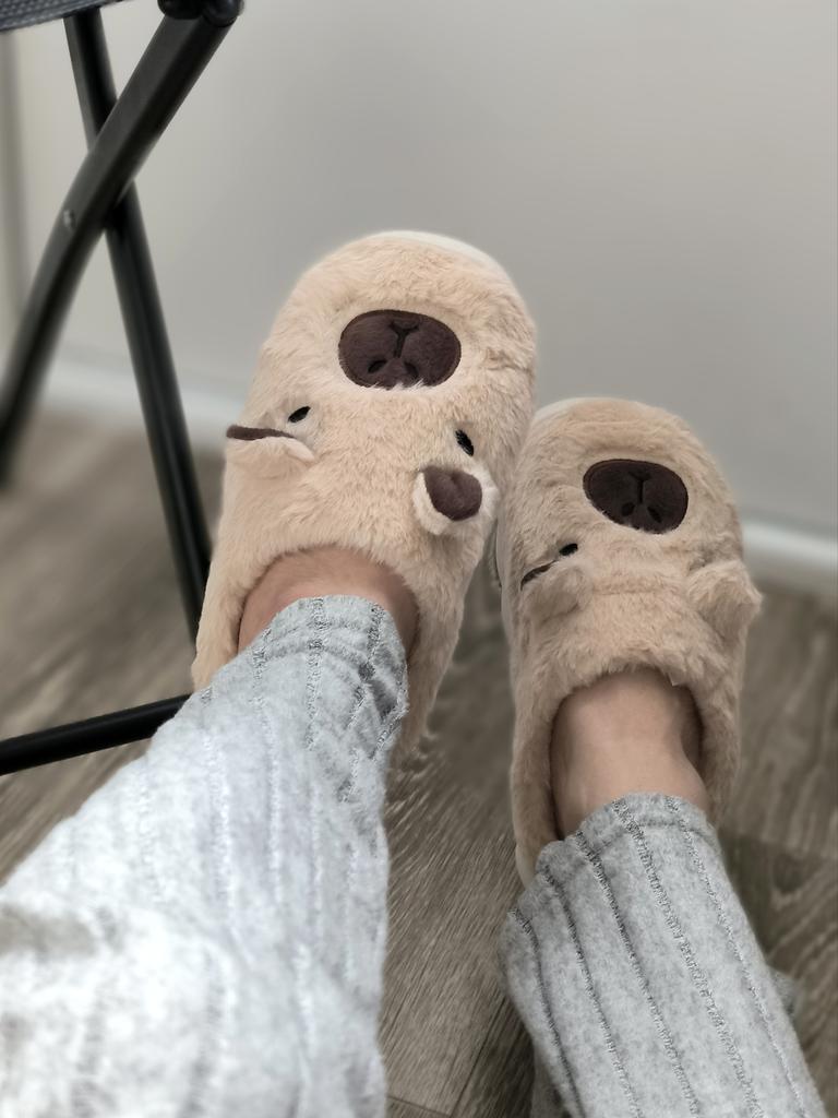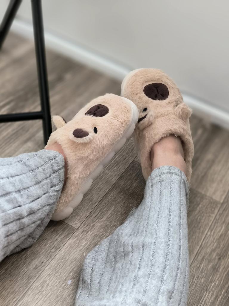 Bear Head Cartoon Bag with Cotton Slippers for Women In Autumn and Winter, Indoor with Plush Warm Shoes for Outdoor Wear, Couple's Plush Snow Boots