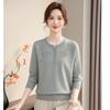 Middle-aged and old women's clothing spring and autumn thin shirt middle-aged mother spring fake two-piece knitted bottoming shirt top