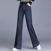 Winter Warm Casual Baggy Straight Jeans Thicken Fleece Wide Leg Denim Pants Women Elastic High Waist