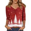 Women's Tops Three-quarter Sleeve Shirt V-neck Loose Casual Shirt Print T-shirt