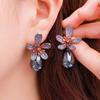 Elegant Women Blue Stone Rose Flower Ear Clip Earring Jewelry Fashion Gifts AVE