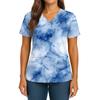 Women's Gradient Print V-Neck Double Pocket Short Sleeves Hem Slit Uniform Caregiver Top