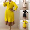 Kvinner Plissékjole Trefffarge V-krage Batwing Langermet Løs kalv Lange kjoler Uformell stil