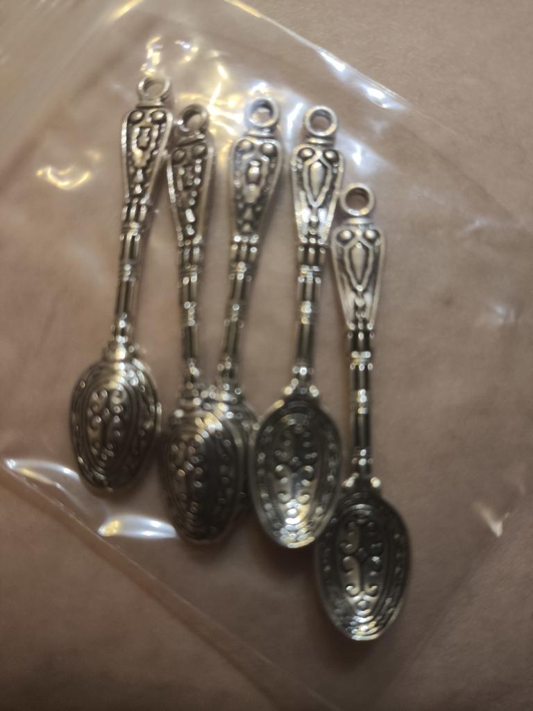 5 stk Vintage utskårne skjeer Charms antikk sølvfarge sinklegering 10X49mm