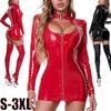 Kvinner fargerik faux kjole nattklubbkjole høy elastisk dyp v-hals glidelås kortermet kort skjørt innpakket hoftekjole