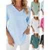 Ladies Casual Fashion Sexy Solid Color V-Neck Loose Gathered Mid-Sleeve Top