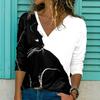 Black Cat Print Women Tshirts Ladies Tops Long Sleeve V-neck Pullover Femme T-shirts T Shirt For Women