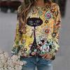 Harajuku Vintage Women's T-Shirts Women Clothing Flowers Cat Print Long Sleeves Tshirt Casual Loose Top Pullover Autumn / Winter