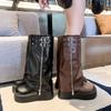 Platform Heel Warm Fur Women Knee High Boots Fashion British Style Shoes Autumn Winter Ladies Knight Long Booties