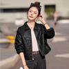 Pu Leather Jacket Women's Short Harajuku Style Korean Style Slim Student Bf Style Loose Motorcycle Leather Jacket Trendy