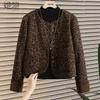 Autumn New Women's Fashion Animal Print Round Neck Long Sleeve Single-breasted Cotton Jacket Coat