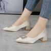 2024 Women's Pumps Shoes Pointed-toe Rhinestone Square Buckle Chunky Heel Shoes for Women 2024able Black Work Shoes Size 32-43