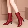 Fashion Mid Calf Shoes Woman Leather High Heels Big Red Elegant Heeled Pointed Toe Half Boots Women Demi-season Sale Designer Luxury Y2k
