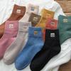 Dongdaemun Women'S Socks Double Needle Cartoon Expression Smiley Face Animal Embroidery Women'S Cotton Socks Medium Tube Socks Stacking Socks