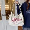 Simple Canvas Bag Large Capacity Shoulder Bag Women's Embroidered Tote Bag Bucket Bag