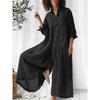 Women's Long Sleeve Casual Jumpsuit Pants Solid Color Temperament Button Midriff Clothes