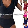 Solid badedrakt i ett stykke dame rødt badetøy Sexy dyp V-hals badedrakt Bakløs badedrakt med høye ben for kvinner