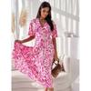Women's Printed V-neck Waist-closing Short-sleeved Dress