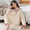 Women's Striped Cotton Pajama Set: Long-Sleeved and Camisole Tops with Trousers, Four Pieces (Spring, Autumn, Summer).