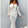 Women's Winter New Fashion Sexy Wind Hollow Slim Thin Long Dress Dresses