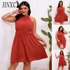 Summer Women's Plus-size Half High Neck Halter Waist Jacquard Solid Color Dress