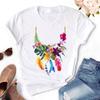Flower Feather Print T Shirt Cotton Casual Short Sleeve Round Neck T Shirt Fashion Retro Spring Women's White Fashion T Shirt